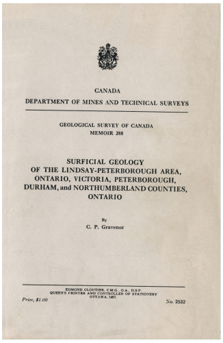 Surficial Geology of the Lindsay-Peterborough Area, Ontario, Victoria, Peterborough, Durham and Northumberland Counties, Ontario